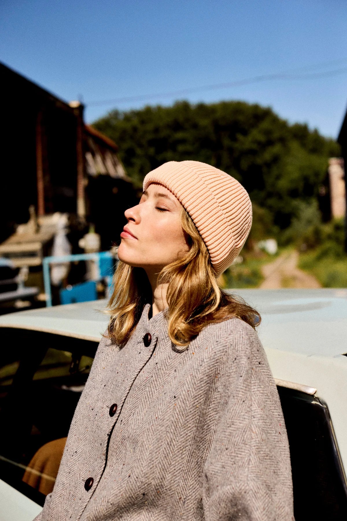 The studio model is 1m70 tall and wears a size S, which fits her with just the right amount of looseness. Size XS is suitable for sizes 34/36 and heights up to 1m63. Size S works for sizes 36/38 and heights up to 1m70. Size M fits sizes 38/40/42 from 1m70 and above.