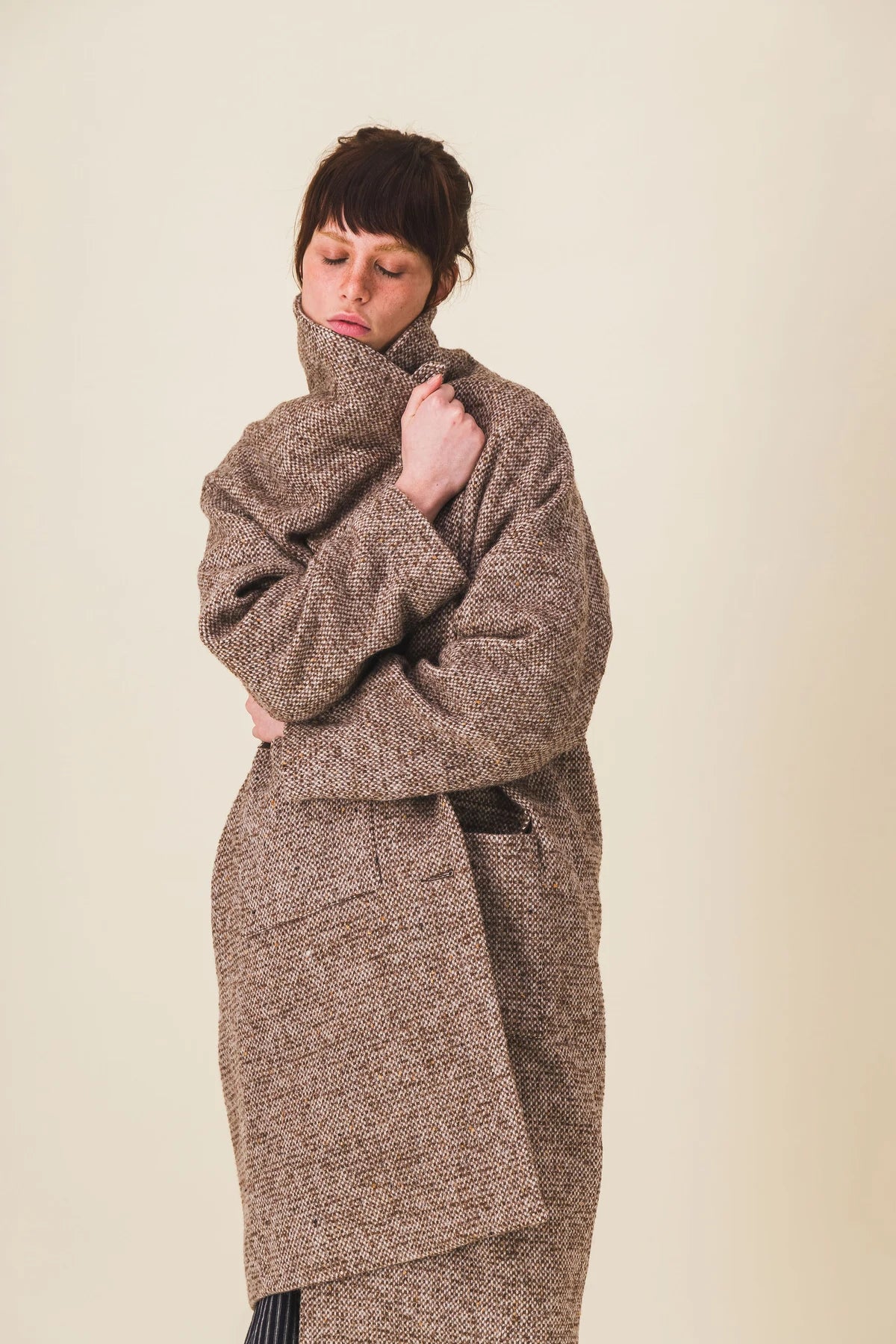 Buttoned shawl collar and large patch pockets, woven in Italy.