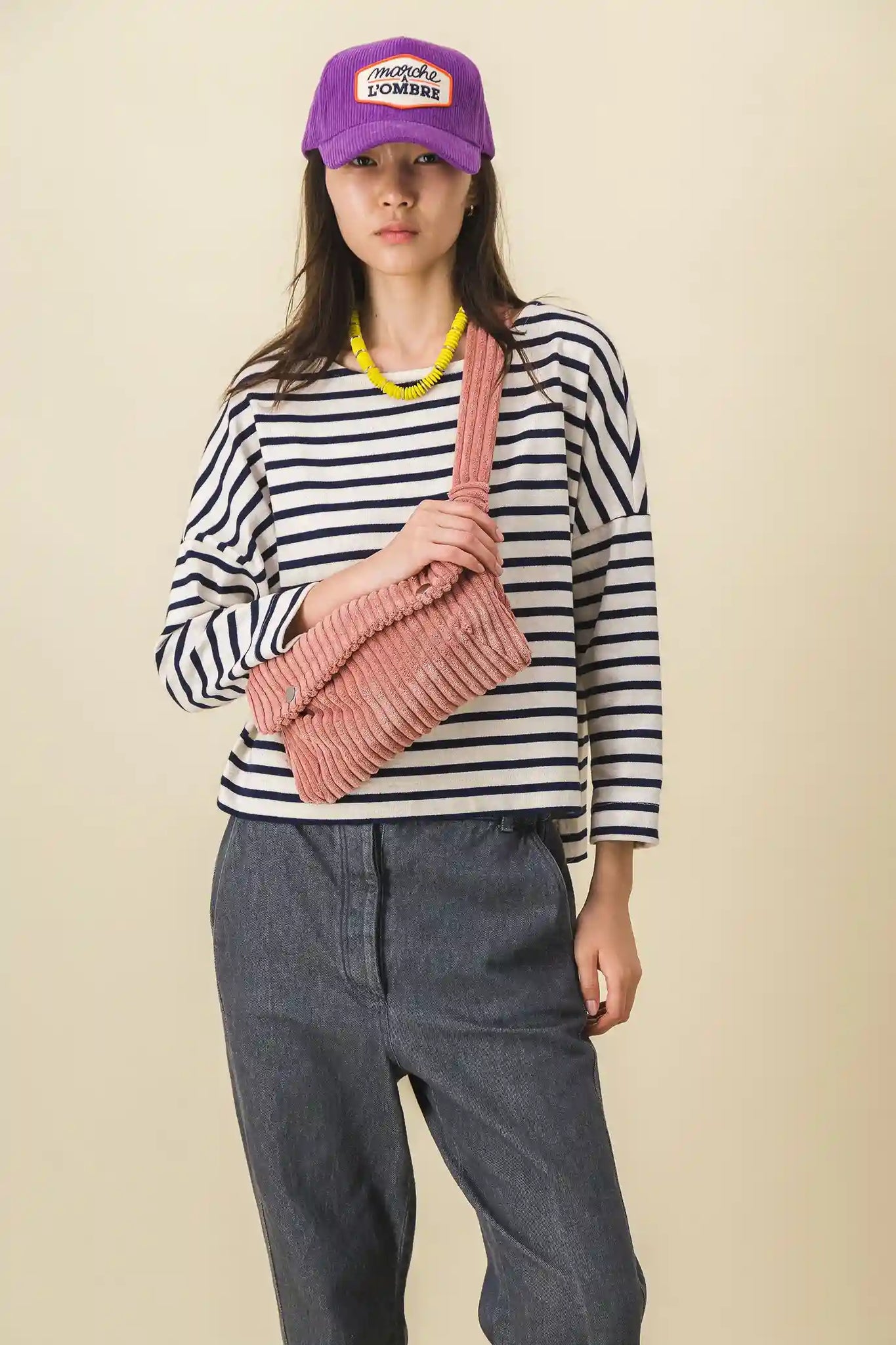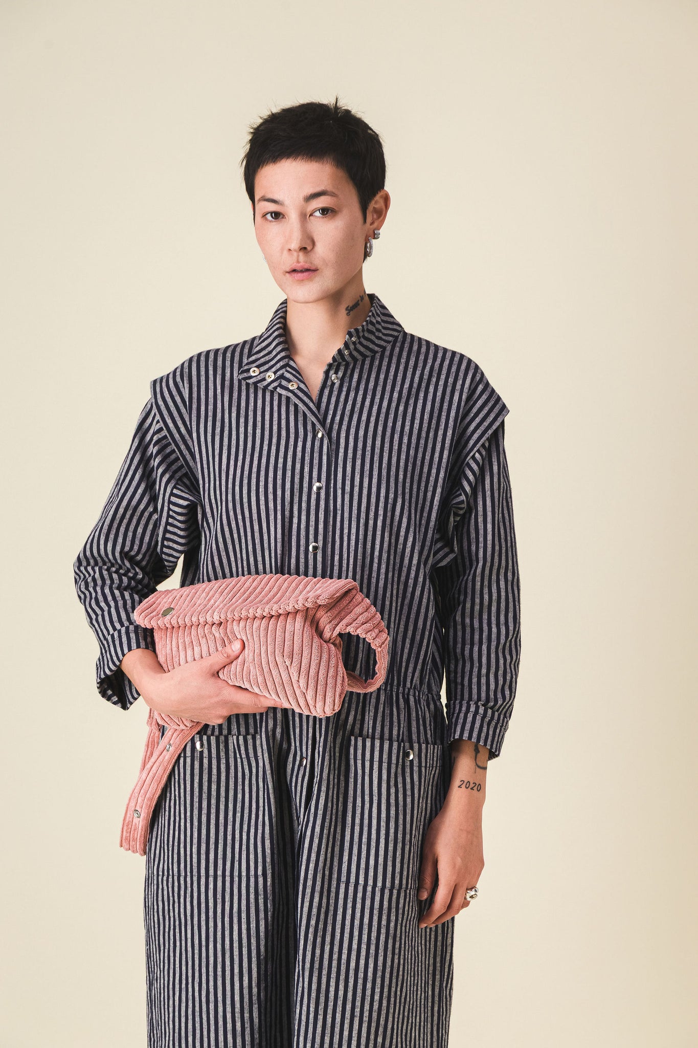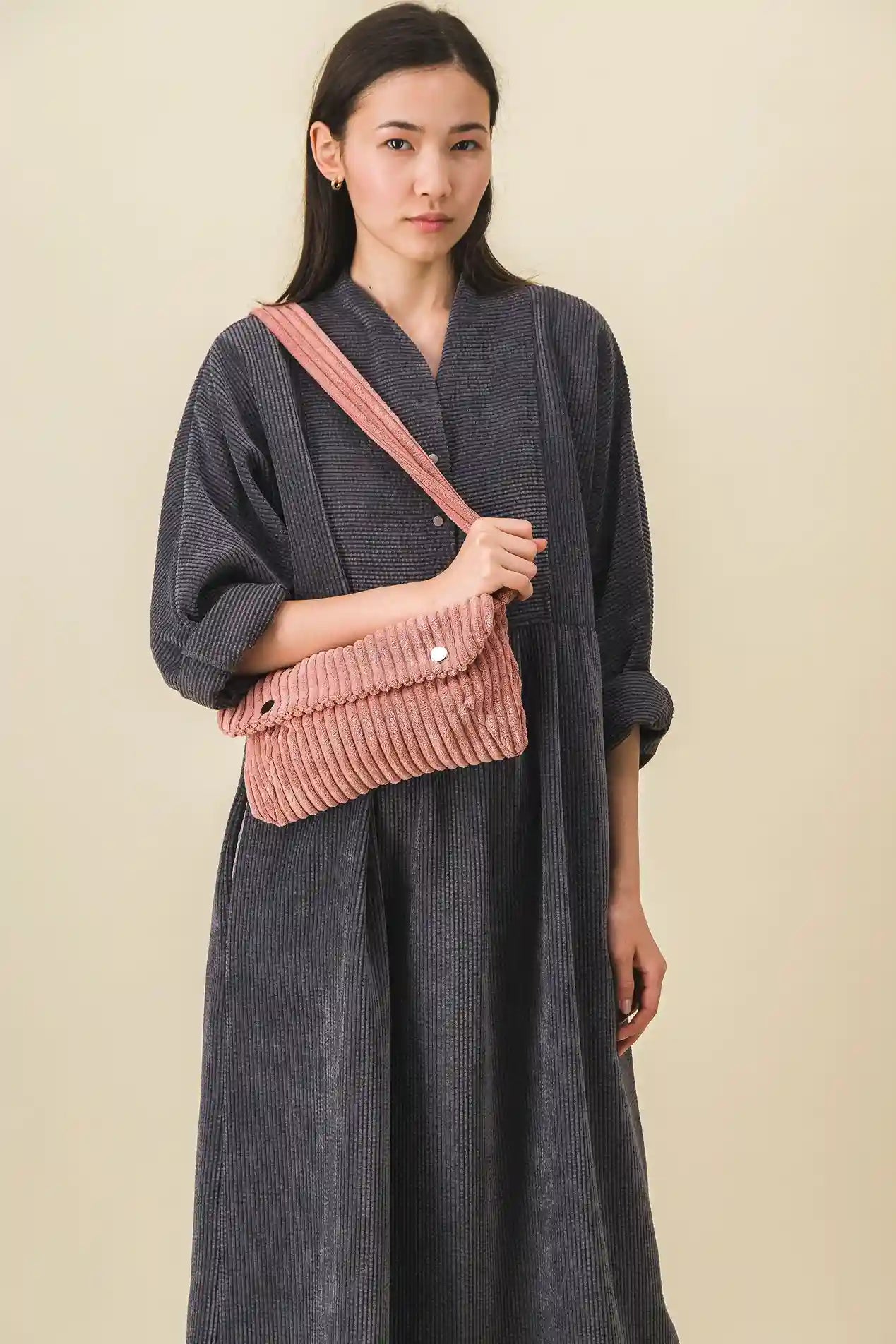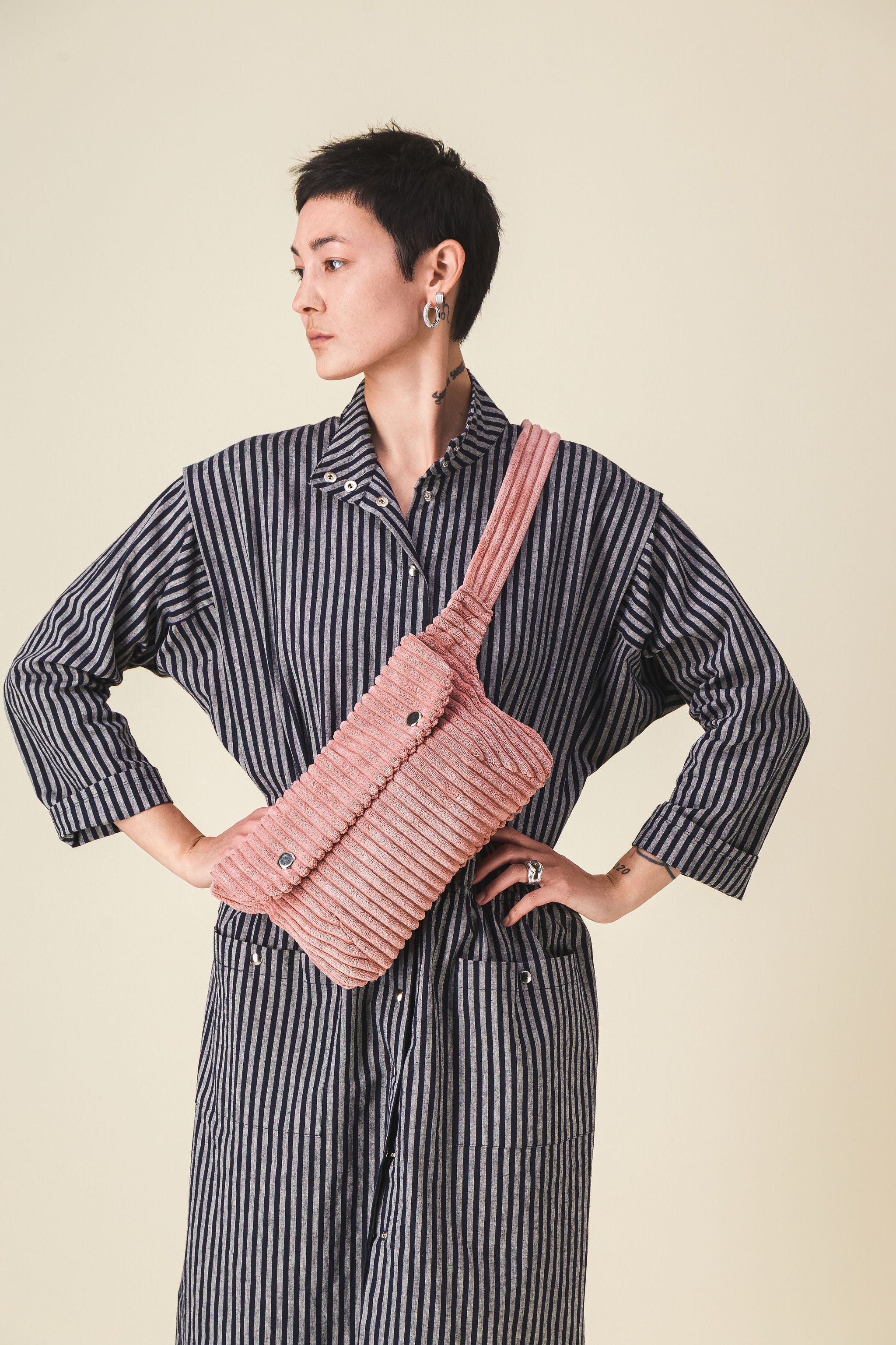 Oversized corduroy fanny pack, thick ribbed Velvet, old pink, size XL.
