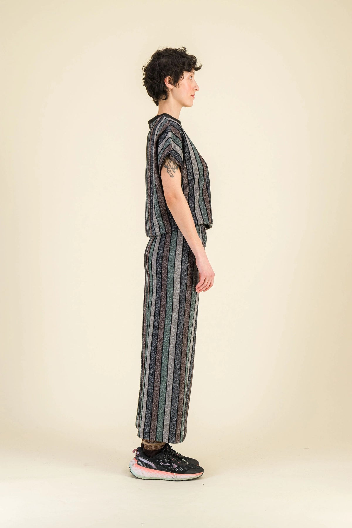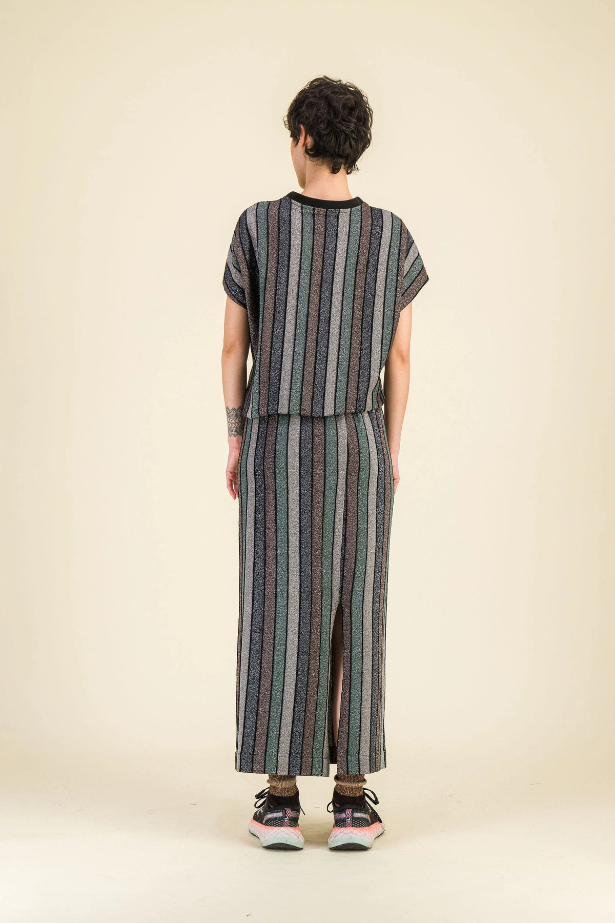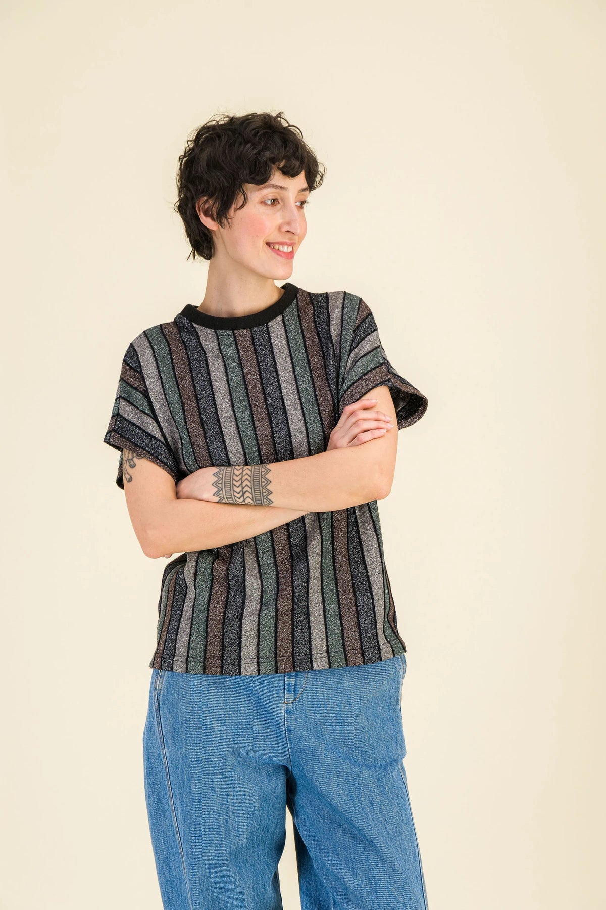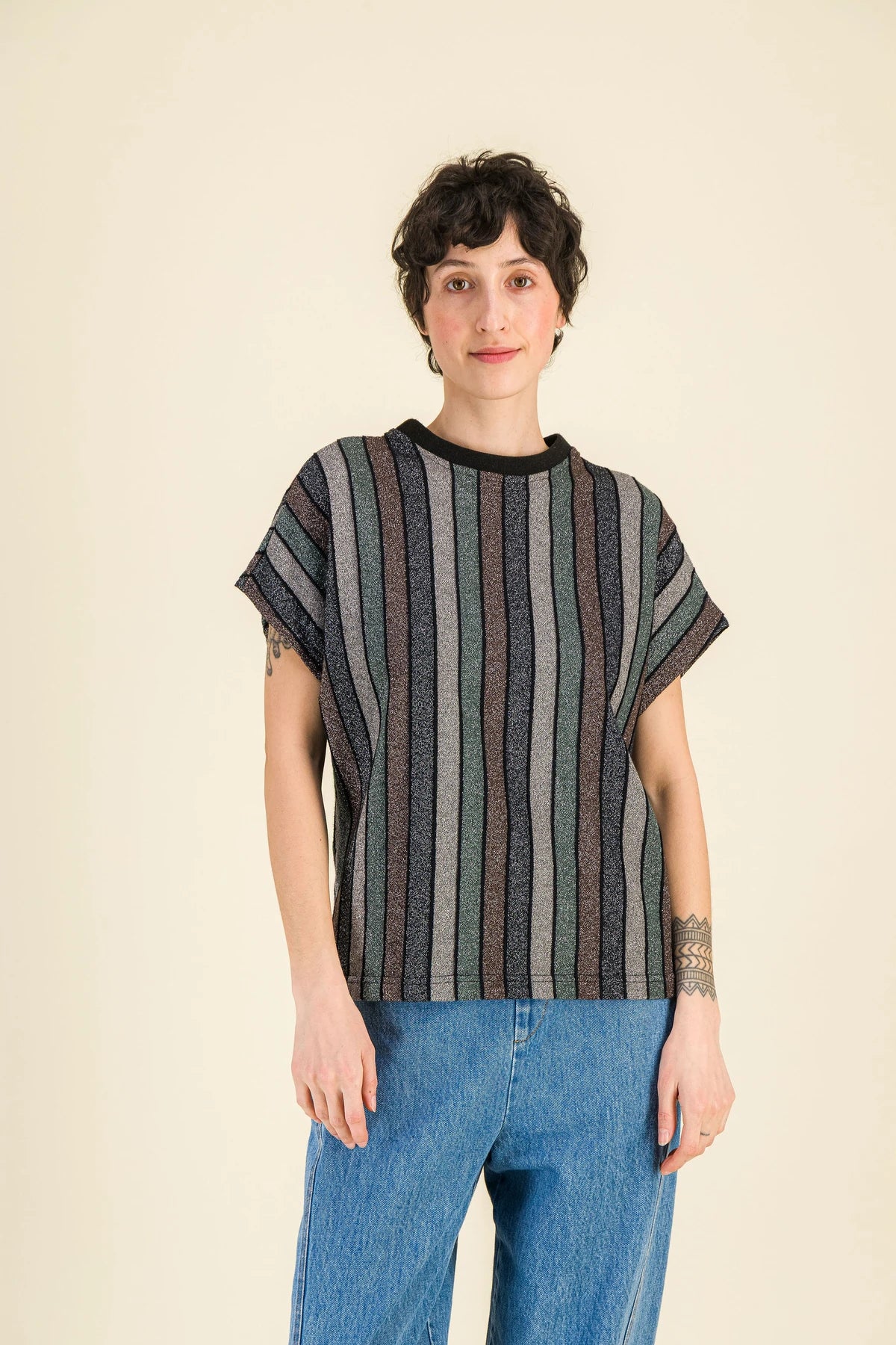 Coupe épurée, laissant le tissu s’exprimer pleinement. Col noir apportant une touche de structure. À associer à la jupe Soko pour un total look facile au quotidien.